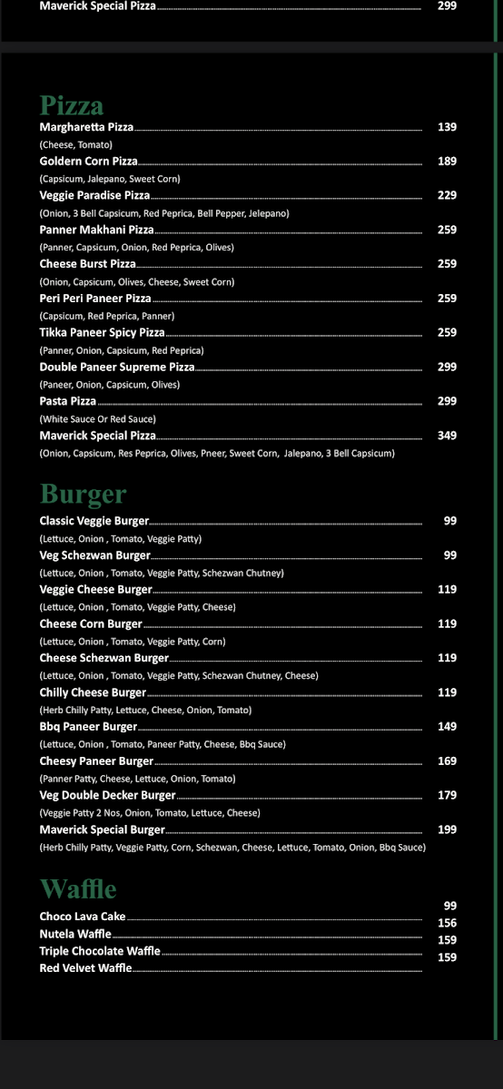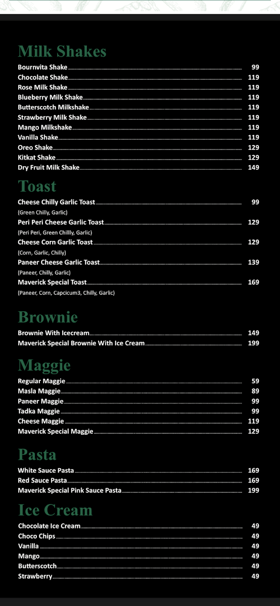 Pasta aficionados aren’t left out either! The White Sauce Pasta and Red Sauce Pasta, both at ₹169, cater to those seeking classic comfort. But if you’re feeling adventurous, the Maverick Special Pink Sauce Pasta at ₹199 is a must-try, combining flavors in a way that truly reflects the café’s innovative spirit.